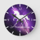 ADD NAME / Beautiful Unicorn Purple Space Round Clock