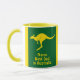 Best Dad in Australia on a Green & Gold Kangaroo, on a mug - You can change the text to add your name, or another phrase.