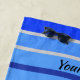 Add Name Blue and White Wave Stripes Nautical Beach Towel
