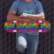 Add Name, Butterflies on Blue Yellow Red Sunset, Skateboard