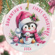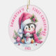 Add Name Cute Penguin Girly Pink First Christmas Ceramic Ornament