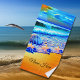 Add Name, Golden Sands Ocean Waves Sea Shells Blue Beach Towel