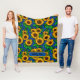 Add Name Golden Sunflowers & Leaves on Dark Blue Fleece Blanket