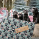 Black Labrador puppy with Add a Name Choice , cute modern pastel pink and blue gift wrap for the dog lover's Christmas holiday or gift giving -- in a modern pastel colour theme - the design is approx 6 inches, so best for larger packages -