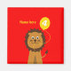 Add a name to personalise this magnet for the birthday child. On a bright red background, this cute smiling lion has a 4th birthday balloon, coloured yellow to match the name.