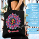 Add Name,, Mandala with OM symbol on a Black Tote Bag