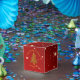 Favour Box - Merry Christmas - Change the Message and the NAME / Year on this Red with Gold Tree and Stars Design - - - - See my store for more items with this design including Plates, Napkins, Coasters, Balloons, Bunting, Desserts, Favour Boxes and lots more table settings and goodies.
