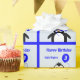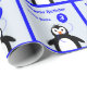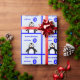 Personalise this cute penguin wrapping paper by adding a name in the box. Children love penguins, and this one has a bright blue 3rd birthday balloon. The default greeting is "Happy Birthday" but you can change this too. The tiled design ensures easy guidelines for cutting the paper to size.