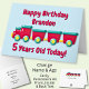Change ANY of the text - the Age & Name - - Change ANY of the Text Lines - make it for Birthday, Christmas or any celebration, - AND Don't forget the extra lines on the back (or leave any line blank to remove any text). . . For more great Train Greeting Cards and other Railway gifts see my store.