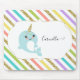 Add Name Personalised Rainbow Narwhal Gold Glitter Mouse Pad