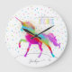 Add Name Personalised Rainbow Unicorn Gold Glitter Large Clock