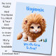 A lovely Baby Lion with Blue Flower on Pink Poster for a baby's room