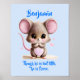 Add Name Text, Baby Mouse with Big Ears on Blue Poster