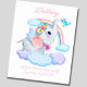 Flying Elephant & Bluebird with Fluffy Clouds & Rainbow Nursery Poster for a baby's room