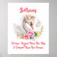 Soft Swan with Pink Rose Flowers Nursery Poster for a baby's room