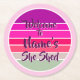 Add Name Welcome to She Shed Pink Retro Sunset Round Paper Coaster