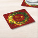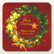 Add Name Year Christmas 20xx Gold Wreath on Red Square Paper Coaster