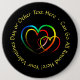 Colossal Button Badge - - Add Names or ANY Message you like - to this Rainbow Hearts on a Black Background - - See the Collections in my store for matching Plates, Napkins, Coasters, Gifts, Gift Boxes and Bags, Candles and LOTS MORE!