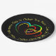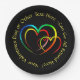 9" Plate - Add Names or ANY Message you like - to this Rainbow Hearts on a Black Background - - See the Collections in my store for matching Plates, Napkins, Coasters, Gifts, Gift Boxes and Bags, Candles and LOTS MORE!