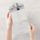 Wedding all in one invitation features all your wedding details and RSVP in one convenient card. The front has an elegant swan design. Add your desired photo to the inside along with the details and RSVP for your wedding. You can also include your return mailing address for the RSVP portion. Use the template to create your own wedding all in one invitation.