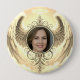 Add a photo to this comforting memorial button with angel wings and a cloud in gold colours.