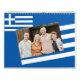 A wall calendar with flag of Greece as a background. The photos are templates to be replaced with your own. You can change the calendar to a country of your choice. Great gift item for Greek Americans. Ημερολόγιο.