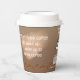 Looking for small coffee shop ideas? Create custom coffee paper cups with your coffee tea cafe website and social media links. Add these personalised paper coffee cups to your coffee shop supplies list. Mix up the quote on the front with funny coffee quotes. Order several designs and mix up the funny coffee sayings, quotes, and puns. If you are thinking about opening a coffee Shop. A business plan including marketing ideas are essential. Create social media buzz by asking for coffee puns, quotes, or sayings.