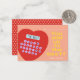 Cute classroom Valentine's Day card featuring an illustration of a heart-shaped calculator. A playful pun is typed out in a calculator font. Personalise the front with your name . The backside features a coordinating spot pattern in pink and red.