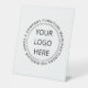 A simple add your logo and business name tabletop pedestal sign for your desk or convention business display.