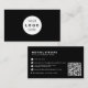 Simple modern contemporary basic black and white custom logo business card with bold typography, QR code, and social media icons.