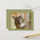 Keep this cute close-up photograph of a pink nosed grey tabby cat or REPLACE it with your favourite photo and send it off just to show you are thinking of someone. Customise it to change the text on the back of the postcard and to select a font style, colour, and size .