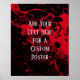 Add Your Custom Text Black & Cherry Red Marble Poster