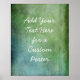 The background is covered in a scratched, distressed, high-contrast vintage grunge graphic with in shades of deep green and teal. Over that, a template field was added for your text. Use this space to add your favourite quote or sentiment. Maybe it's funny. Perhaps you need a poster that motivates you. Whatever your reason, make this design your own. The font can be changed if you prefer. Another version featuring this background but with an alternate font is also available.