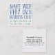 The words you see on the front of this design have been turned into a space-holder graphic file. In order to use the template, just click "change" and add your own image. Photos and other files work too - repeating patterns, abstract art, random graphics you enjoy: try them all! To make sure your image completely covers the surface, make sure you click the "fill" button. If you want to make sure it fills only the width, just click "fit" and choose the background image that will fill the remainder of the surface. The back of this card has 3 template space holders in place for you; just replace the name, contact information, and website address with your own, then customise as needed.