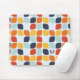This mid-century modern pattern features orange, teal and teal geometric shapes.