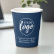Perfect for an office party or presentation, these logo cups are simple in design. You can change the background colour to match the colour that coordinates with your company logo. The three lines of type can be used for company contact information or for a place to add a special occasion - such as an anniversary event for your business.