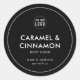 This minimalist modern product label has a round white border and an editable background colour (click customise to change). It makes a perfect label for candles, beauty, bath products, etc.