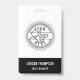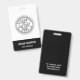 Add your logo to this simple black and white badge to create custom branded name tags for your employees. Customise with a name and title, and add your business address or additional information to the reverse side in white on black.