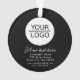 Add your Logo with Custom Text Company Promotion Black Holiday Ornament. Insert your logo into the template and customise the text, company name, address and contact information on the front and on the backside. Business promotion or giveaway for your clients and business partners.