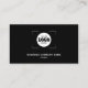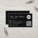 Modern custom company logo generic basic contemporary editable business card template with elegant typography script and QR code in simple black and white.
