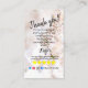 My order arrived 2 weeks from tthe order date. The card looks great. I would have liked some more design options such as stock images, such as some wedding rings, which I would have liked to include on my business card.