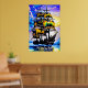 Add Your Message, Brown Blue Sailing Pirate Ship Poster