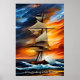 Add Your Message, Sailing Ship in Waves at Sunset Poster