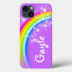Help protect your child's iphone 6 from knocks and kiddy accidents, with this pretty rainbow design girls tough iphone 6 case. Personalise with your own name, perfect short names or nicknames. This example reads Gayle. Exclusively designed and illustrated by Sarah Trett.