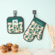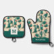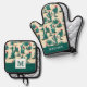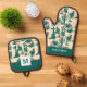Add Your Name | Green & Red Cactus Pattern Oven Mitt & Pot Holder Set