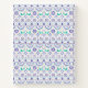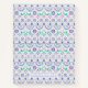 This folk art design features a bird surrounded teal, purple and orange geometric tile pattern.
