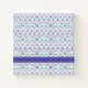This folk art design features a bird surrounded teal, purple and orange geometric tile pattern.