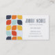 This mid-century modern pattern features orange, teal and teal geometric shapes.