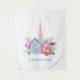 Add Your Name | Watercolor Unicorn Floral Crown Tapestry