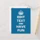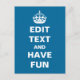 Make your own "Keep Calm and Carry On" parody postcard! To change the background to any colour click "Customise It" then click "Edit".